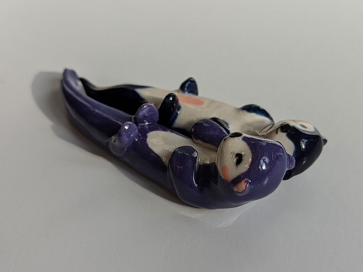 Ces deux loutres sont bleues sombres et violet foncé.
