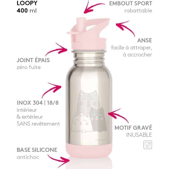 Son bouchon sport et sa base antichoc, cette gourde sera la meilleure alliée de votre enfant.