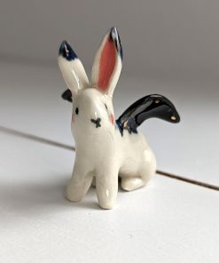 Figurine de Gryphon en porcelaine et or, environ 6 cm de haut. Cette petite statuette parfaite pour un autel personnel ou un décor d’intérieur est faite à la main à Montréal.