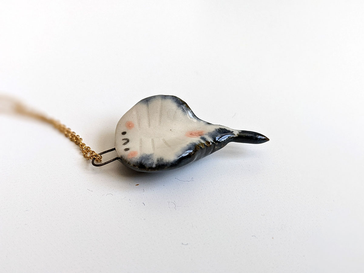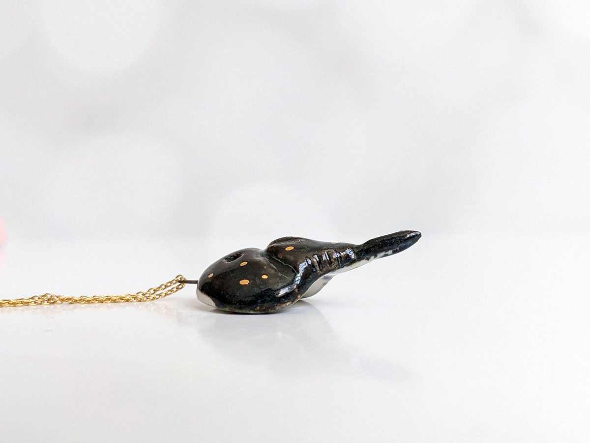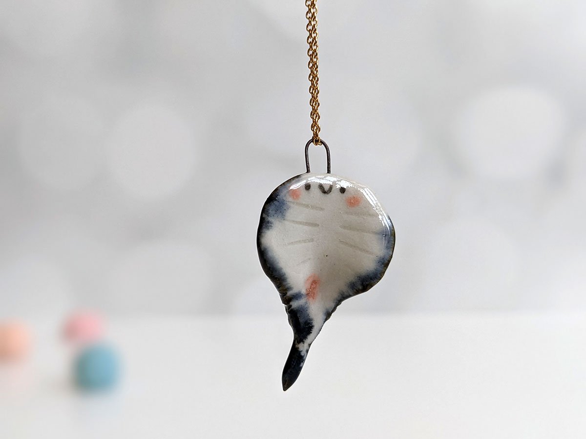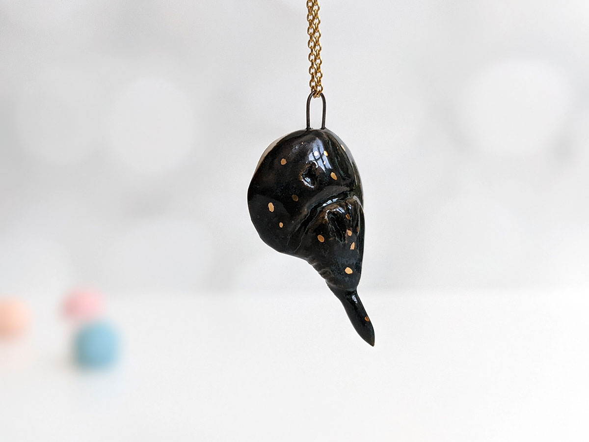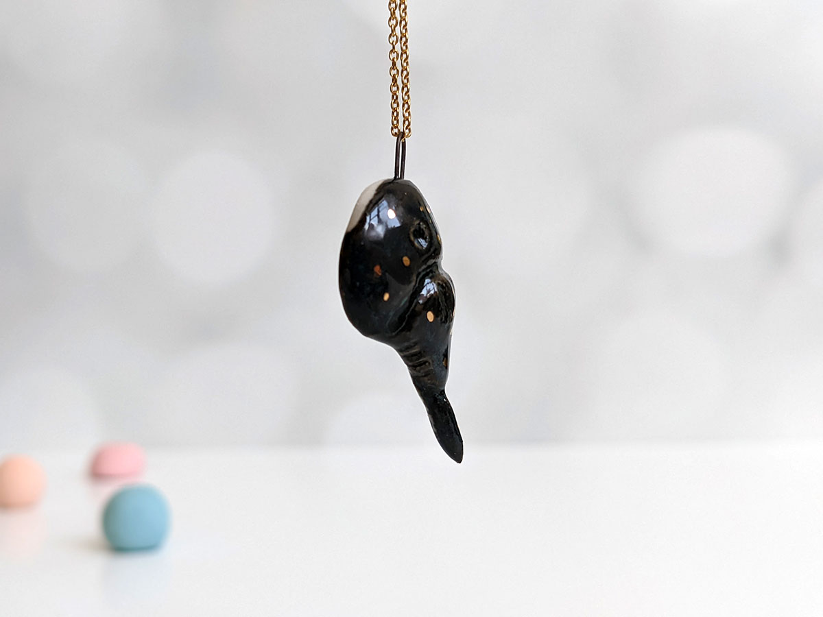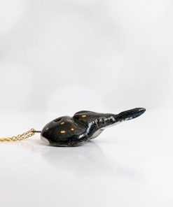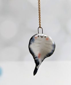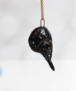 This pendant is handmade, sculpted and painted in Montréal. It’s a one of a kind piece, packed in an illustrated box and sent in its eco-friendly 0% plastic package.