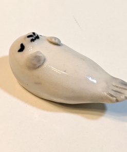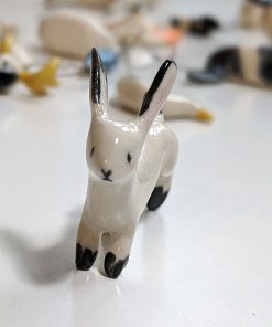 Lapin blanc, détails noirs, en céramique, pièce unique.