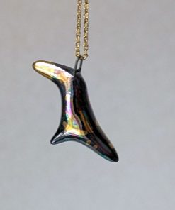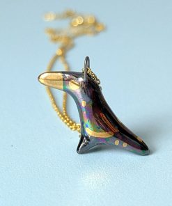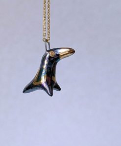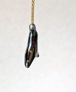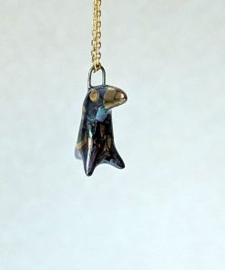 Small porcelain Raven made as a pendant, adorable with pearl luster and gold details. Chain sold separately.