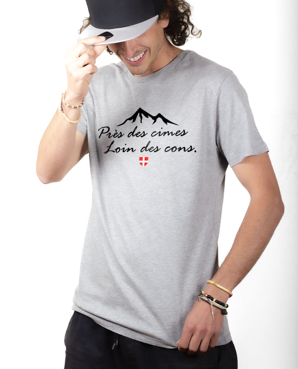 PROMO T-SHIRT HOMME : PRES DES CIMES LOIN DES CONS-GRIS-XL