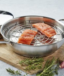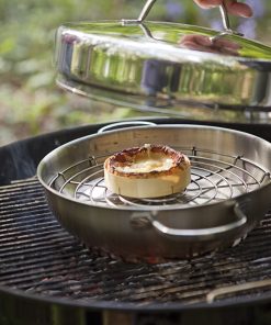 Saumon, truite, jambon à l’os, lard, mozzarella, aubergine, poivron, pilons de caille, canard, … tout cela, et bien plus encore, est délicieux en version fumée à chaud. Et d’autant plus si vous les fumez vous-même. Voilà pourquoi nous avons conçu ce set de fumage pratique : une casserole de 28 cm avec deux poignées robustes, une chambre de fumage, une grille cuit-vapeur et un couvercle haut. La casserole est fabriquée en acier inox de qualité et pourvue d’un fond qui conduit bien la chaleur. Sur tous les plans de cuisson, même l’induction. La chambre de fumage a été perforée de sorte à laisser passer aisément la fumée tout en étant protégée contre les coulures d’eau et de graisse. Avec la grille cuit-vapeur, elle confère à vos ingrédients cette saveur fumée intense et caractéristique. Lorsqu’on ôte le couvercle, un peu de fumée et d’arôme s’en dégagent. Voilà pourquoi il est recommandé de fumer sous la hotte aspirante. Le fumage est une technique de cuisson qui devient de plus en plus populaire. Et bientôt votre nouveau dada ? Il y a beaucoup de chances.